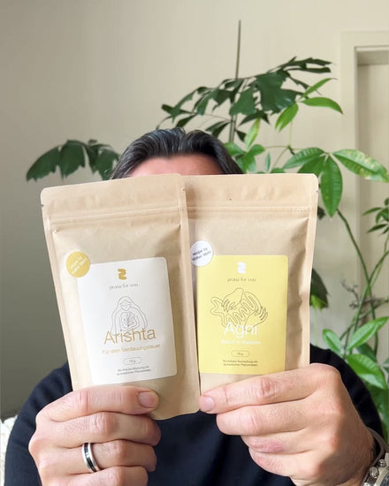 Unsere prana for you Nahrungsergänzungsmittel enthalten perfekt aufeinander abgestimmte Kräutermischungen. Die besonderen Inhaltsstoffe nehmen Einfluss auf ein bestimmtes Dosha-Ungleichgewicht und unterstützen dich, wieder in deine gesunde Balance zu kommen. Die Kapseln sind rein pflanzlich, gluten- und laktosefrei, ohne chemische Zusatz- und Füllstoffe!